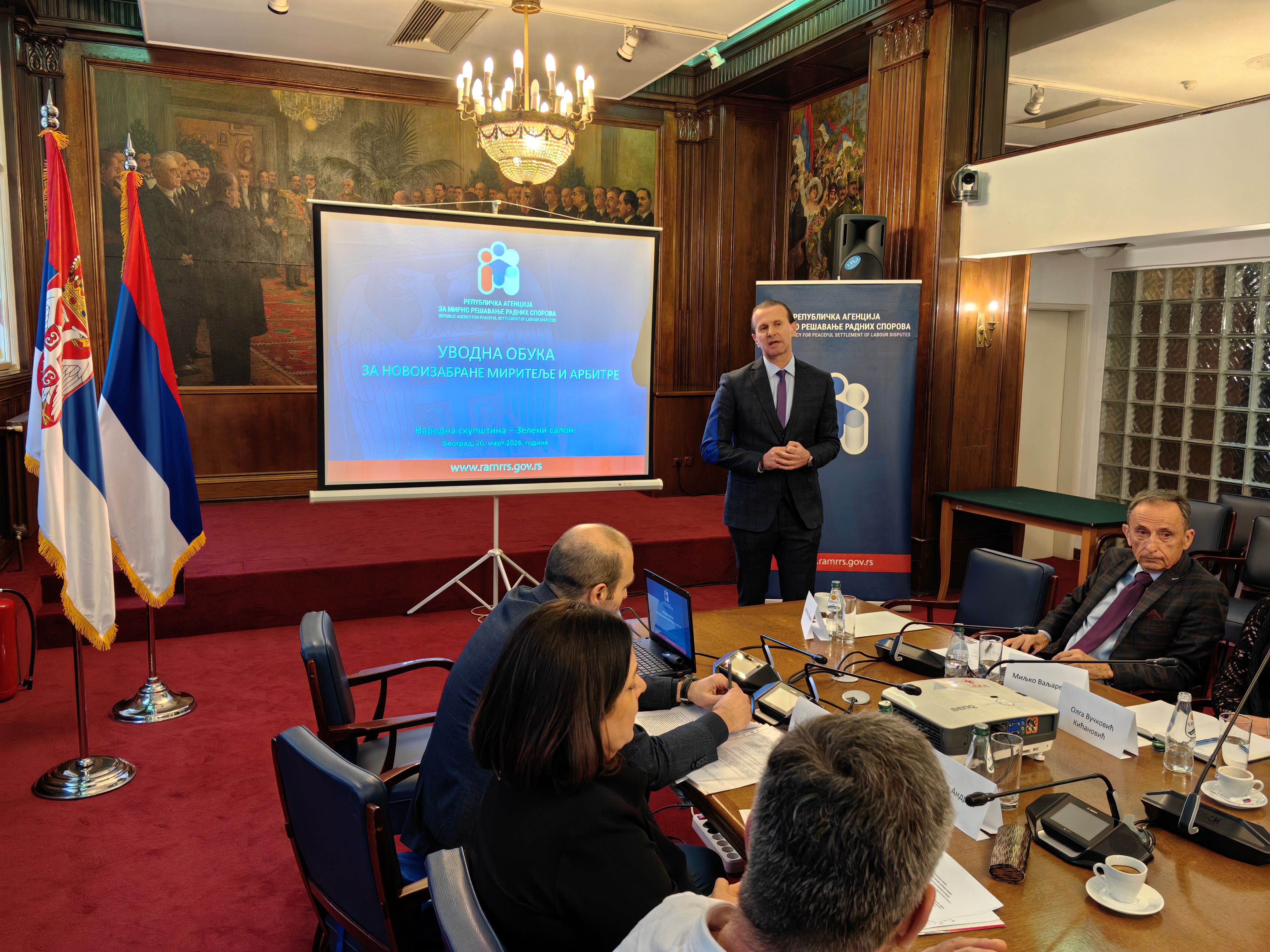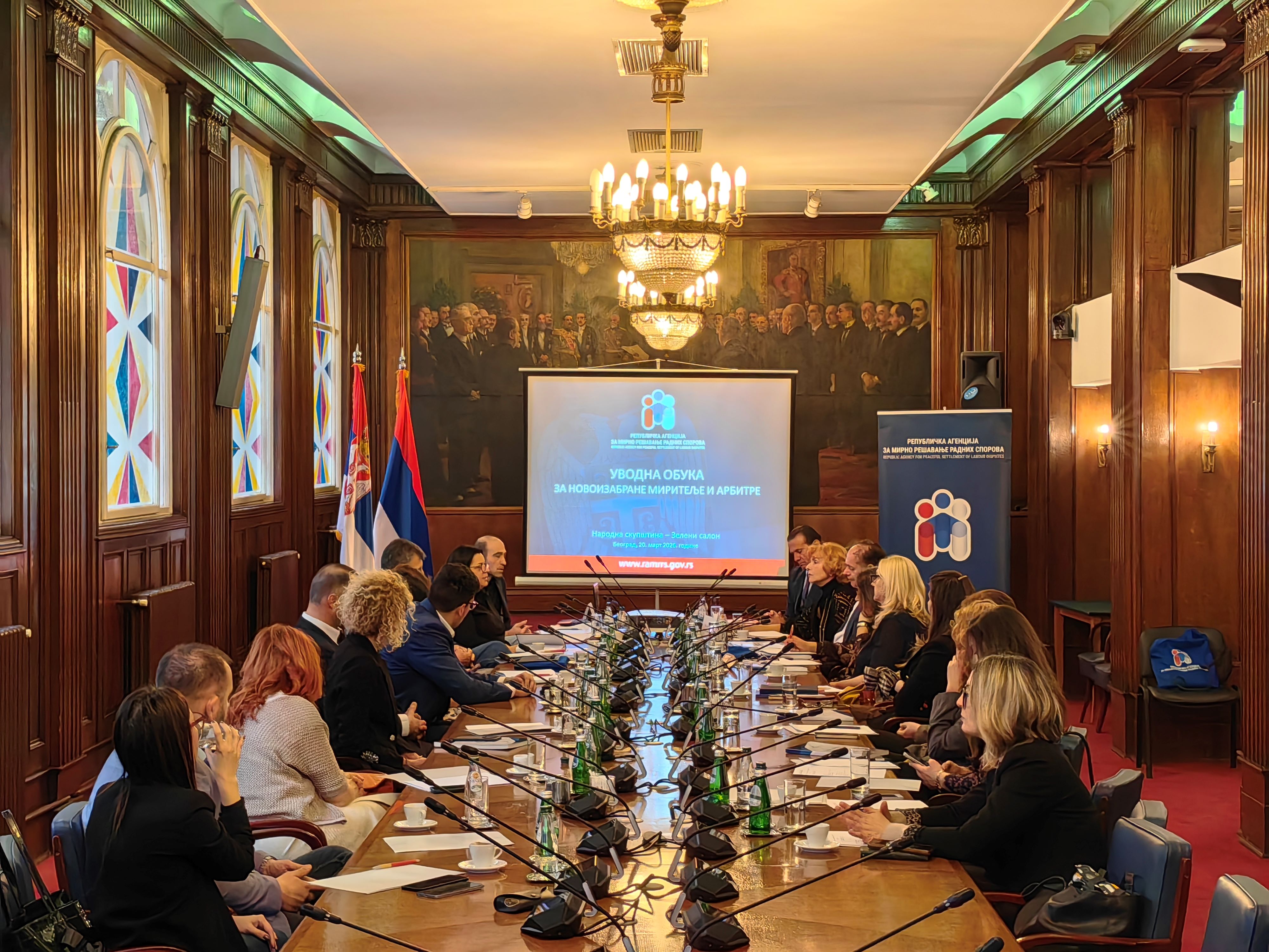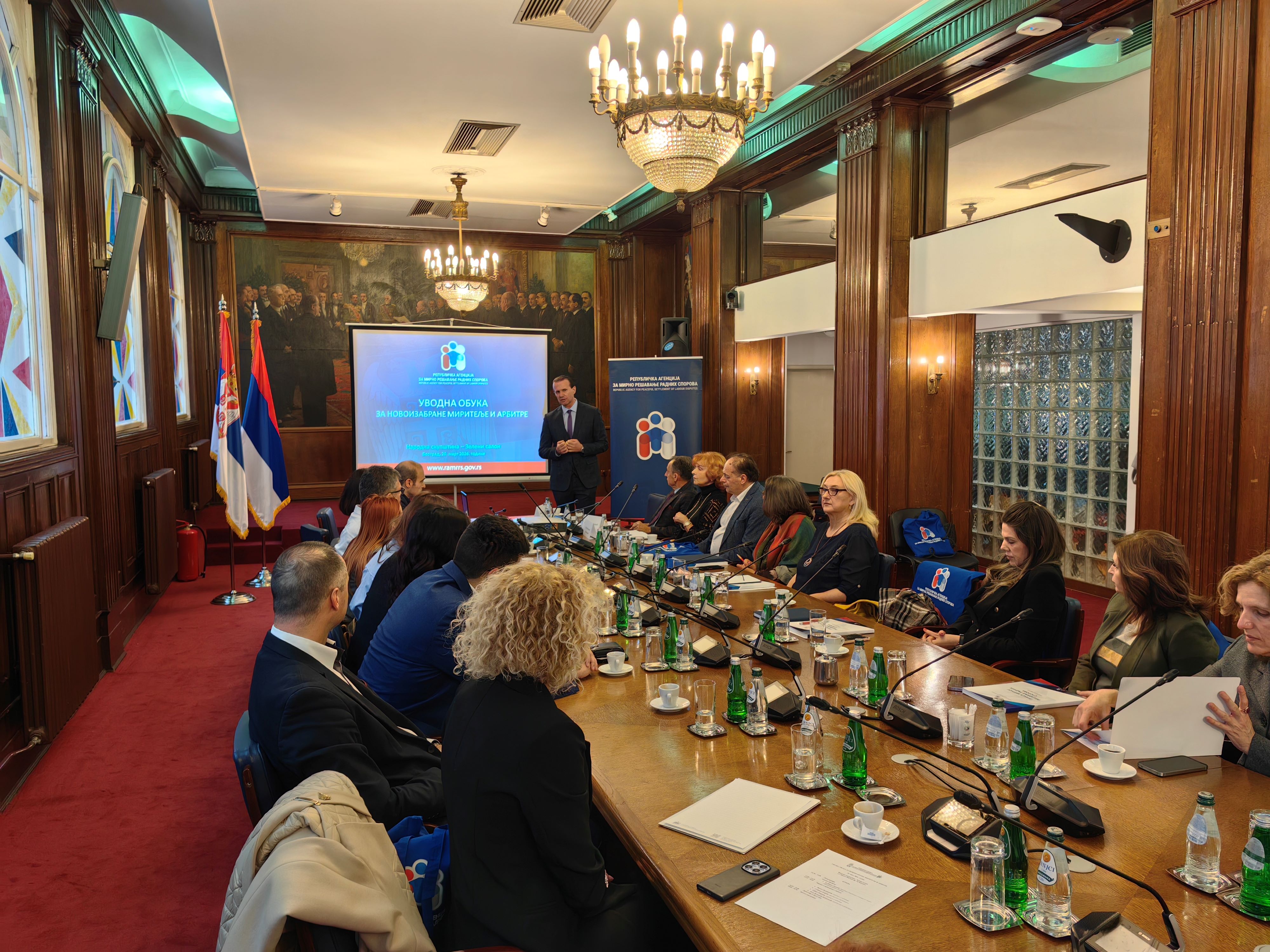 Republička agencija za mirno rešavanje radnih sporova organizovala je u petak, 20. marta 2026. godine, u Narodnoj skupštini Republike Srbije (Zeleni salon), uvodnu obuku za novoizabrane miritelje i arbitre, izabrane na poslednja dva javna konkursa. Obuka je realizovana u okviru Programa posebnog stručnog usavršavanja miritelja i arbitara za 2026. godinu.