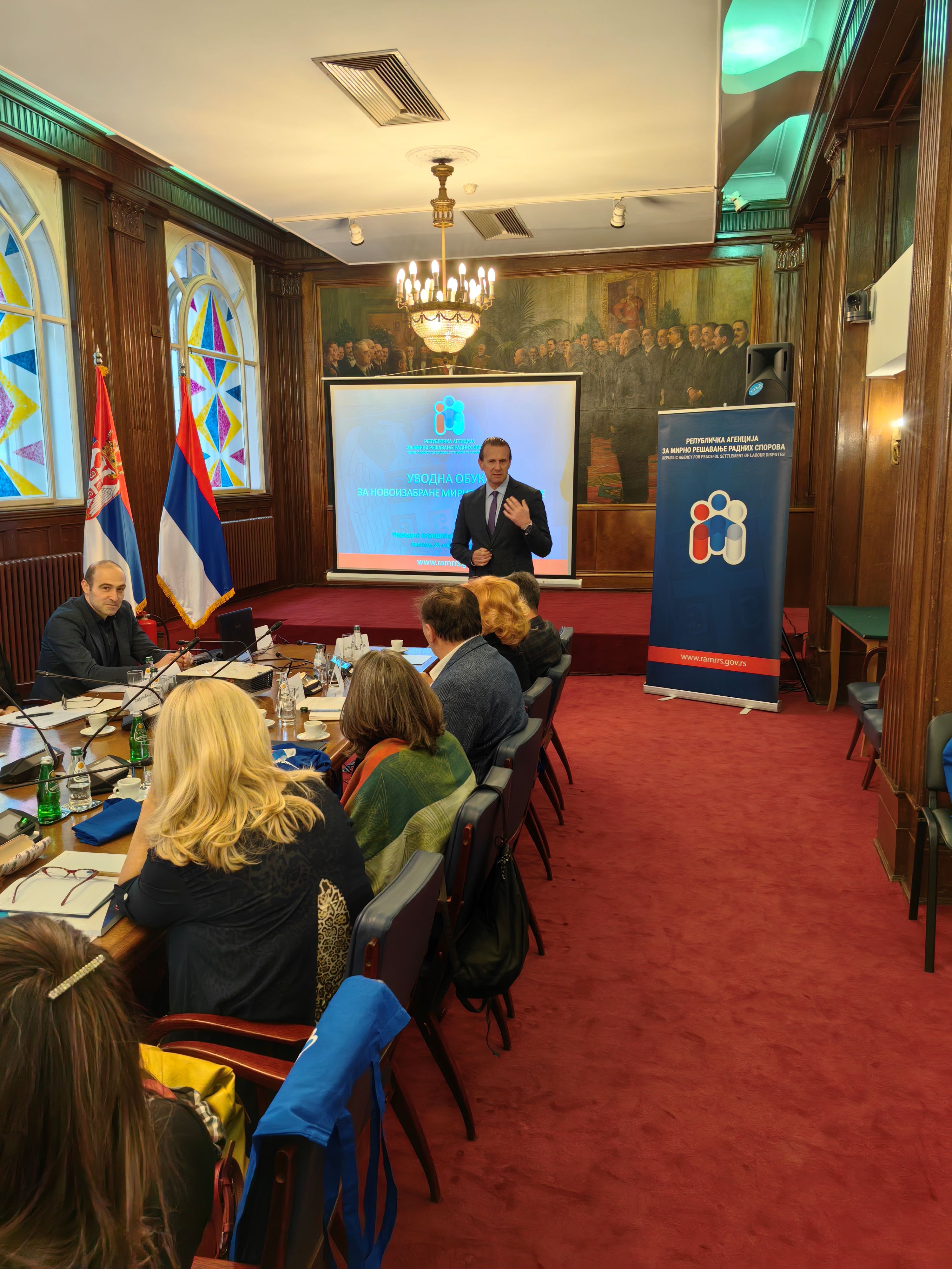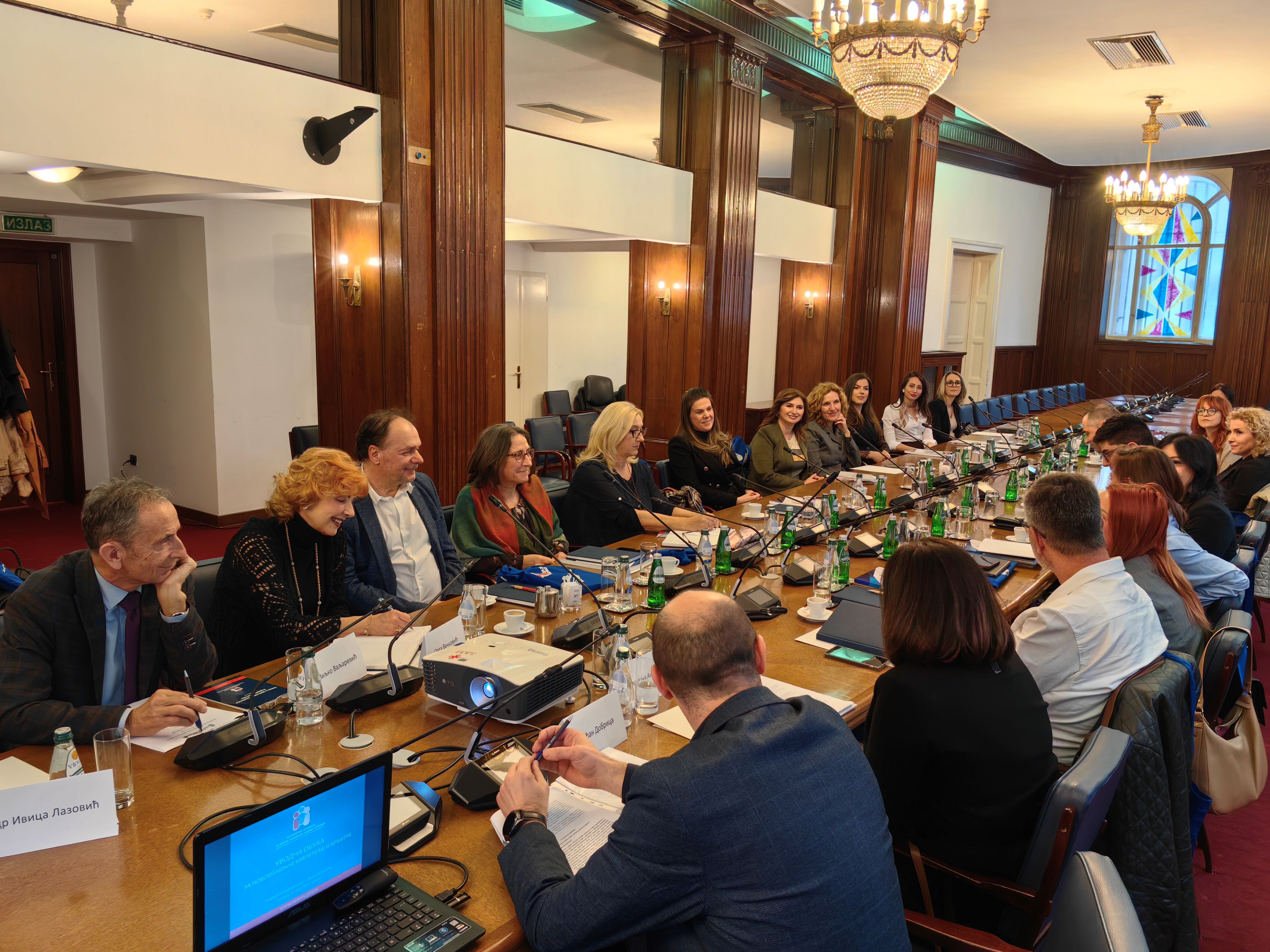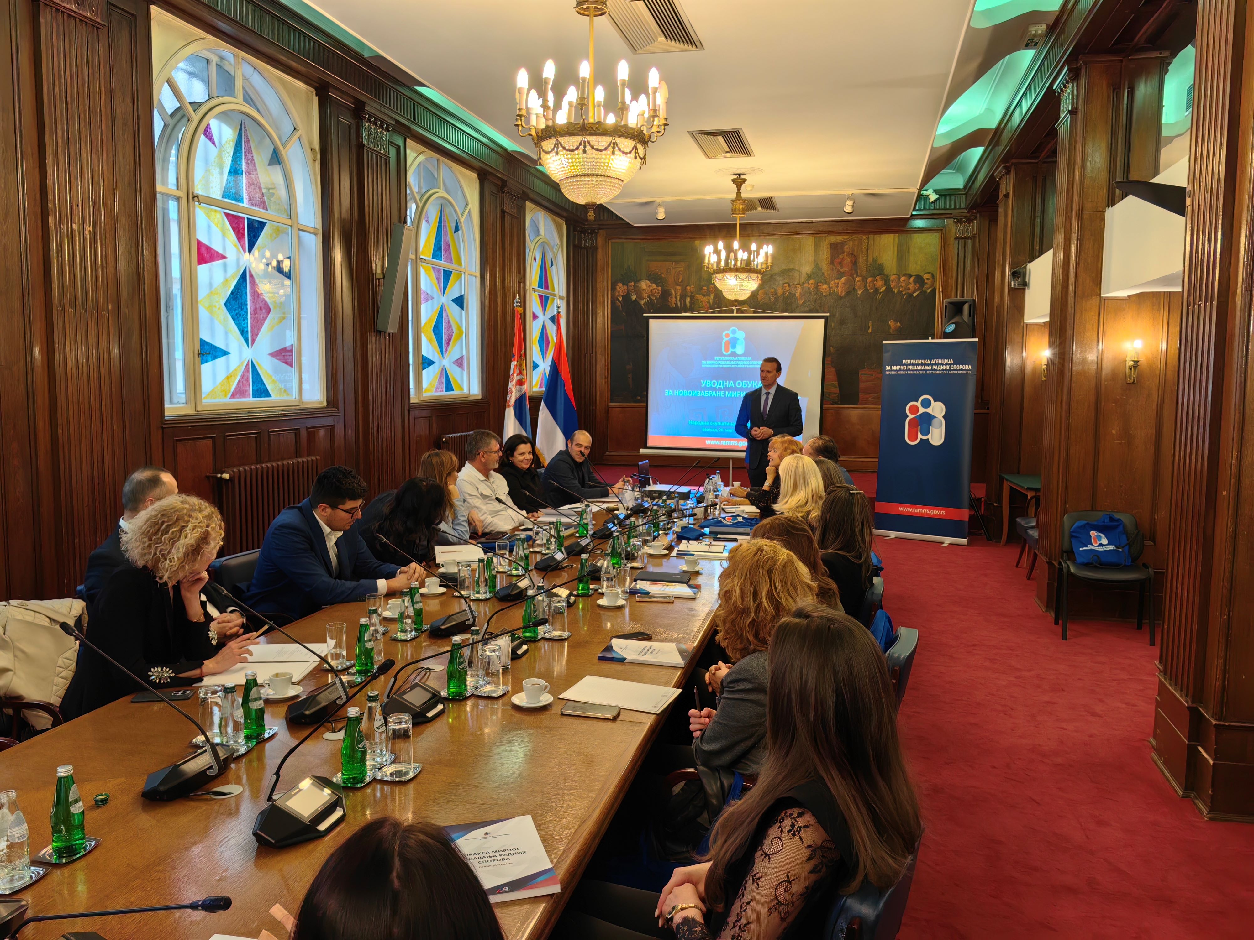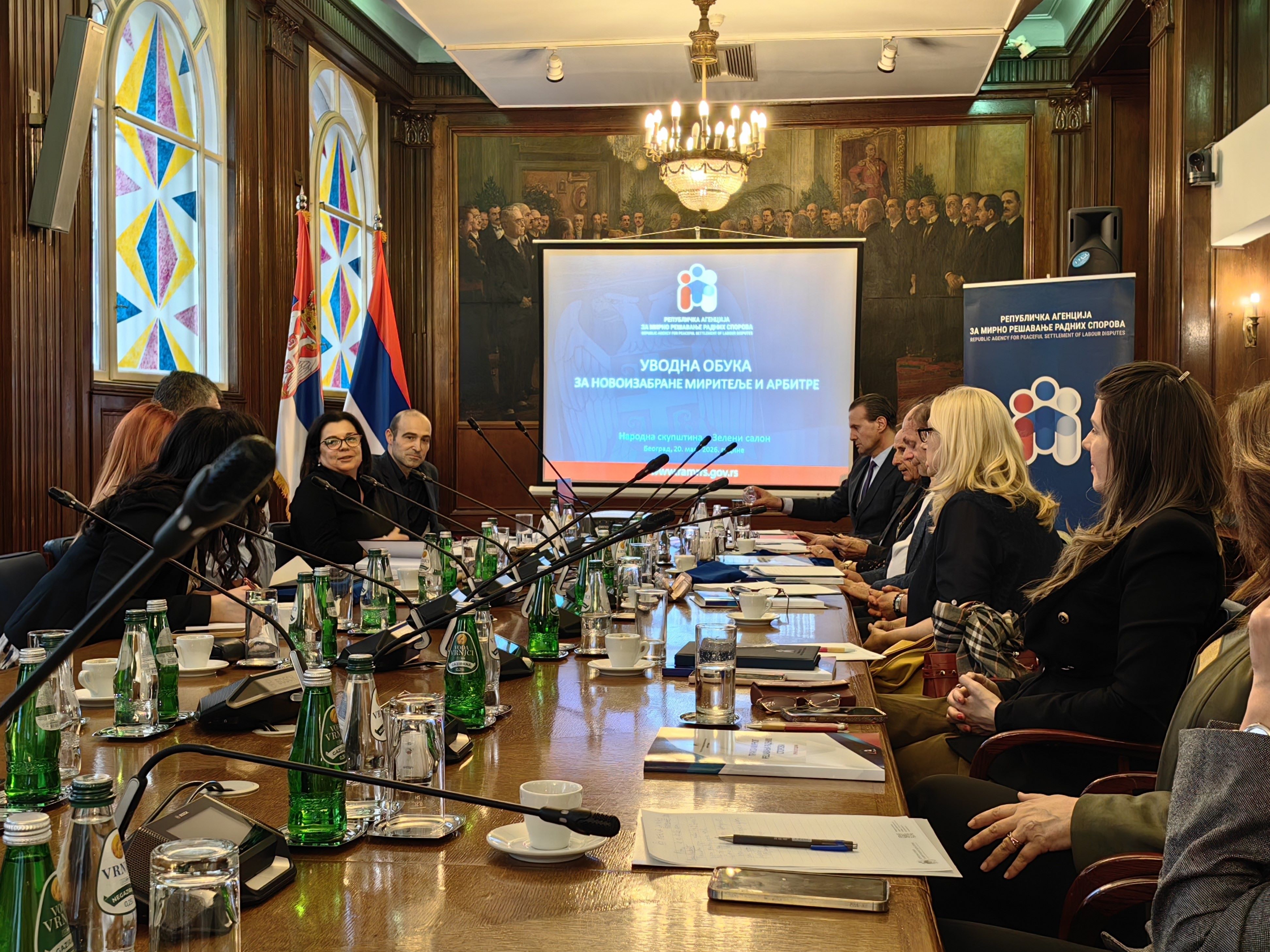 Republička agencija za mirno rešavanje radnih sporova organizovala je u petak, 20. marta 2026. godine, u Narodnoj skupštini Republike Srbije (Zeleni salon), uvodnu obuku za novoizabrane miritelje i arbitre, izabrane na poslednja dva javna konkursa. Obuka je realizovana u okviru Programa posebnog stručnog usavršavanja miritelja i arbitara za 2026. godinu.
